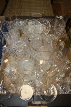 THREE TRAYS OF GLASSWARE TO INCLUDE CUT GLASS DRINKING GLASSES