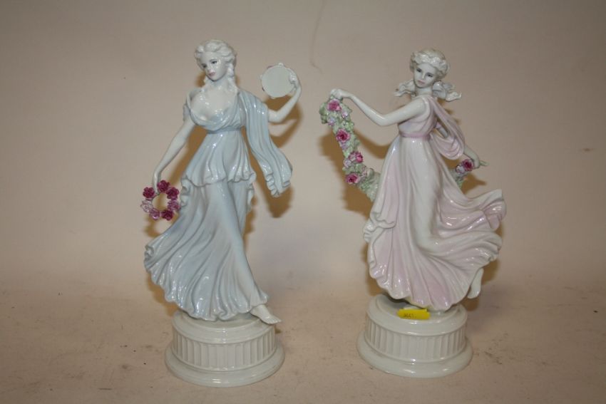 A PAIR OF WEDGWOOD THE DANCING HOURS FLORAL COLLECTION FIGURES