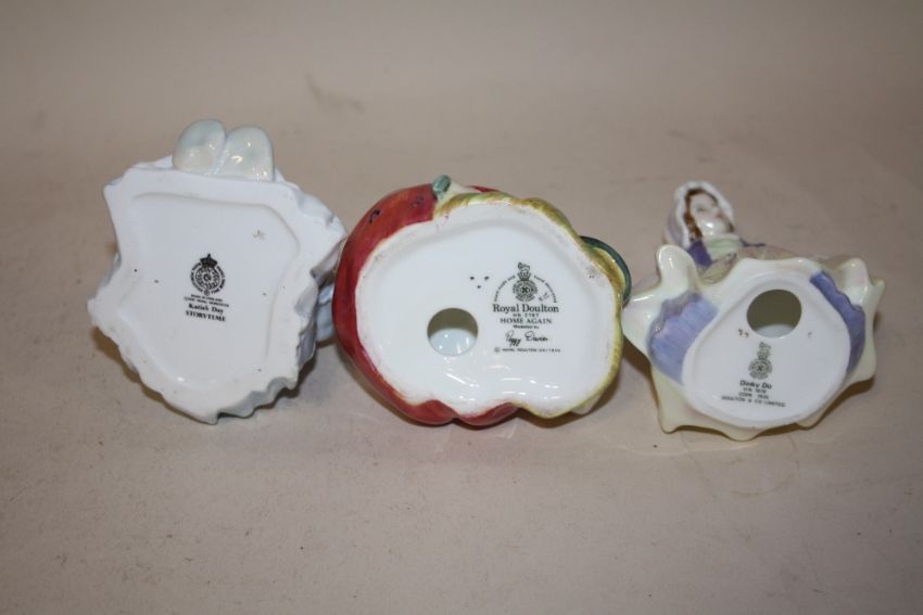 TWO ROYAL DOULTON FIGURES HOME AGAIN HN2167 AND DINKY DO HN1678 AND A ROYAL WORCESTER KATIES DAY STORY TIME FIGURE (3)