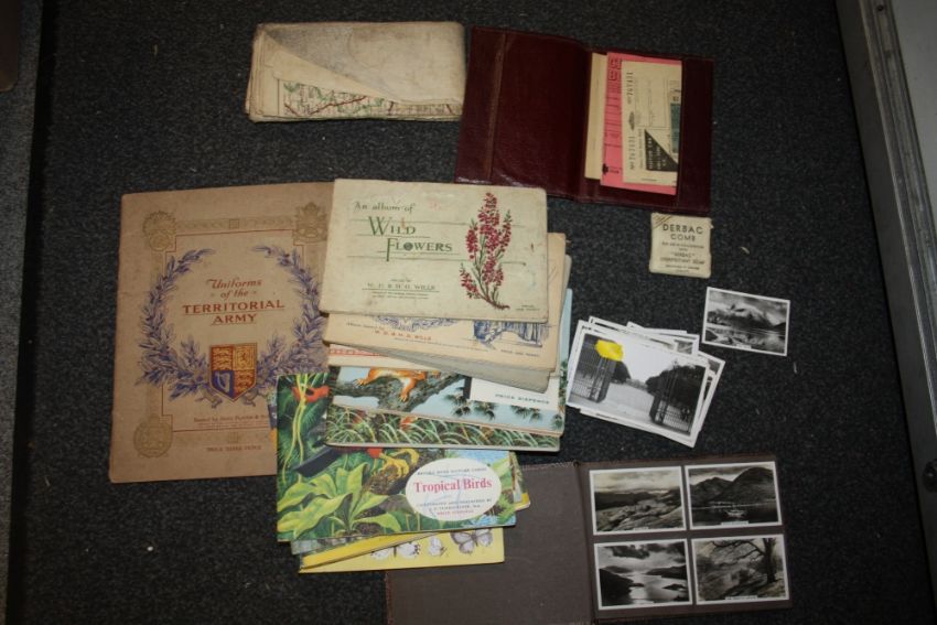 A COLLECTION OF CIGARETTE CARDS, MILITARY RATION BOOK ETC