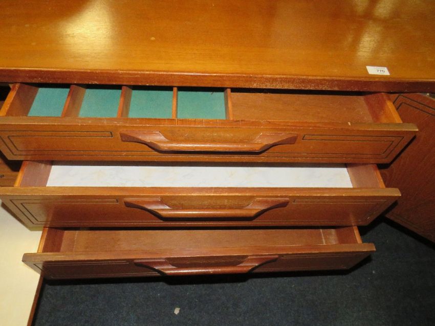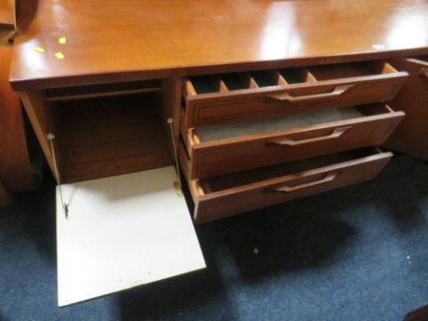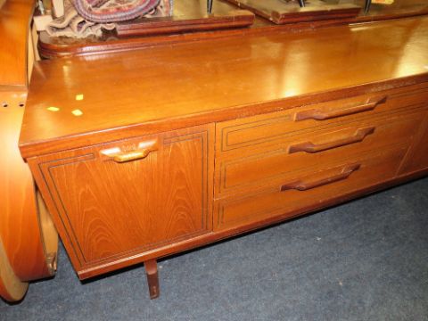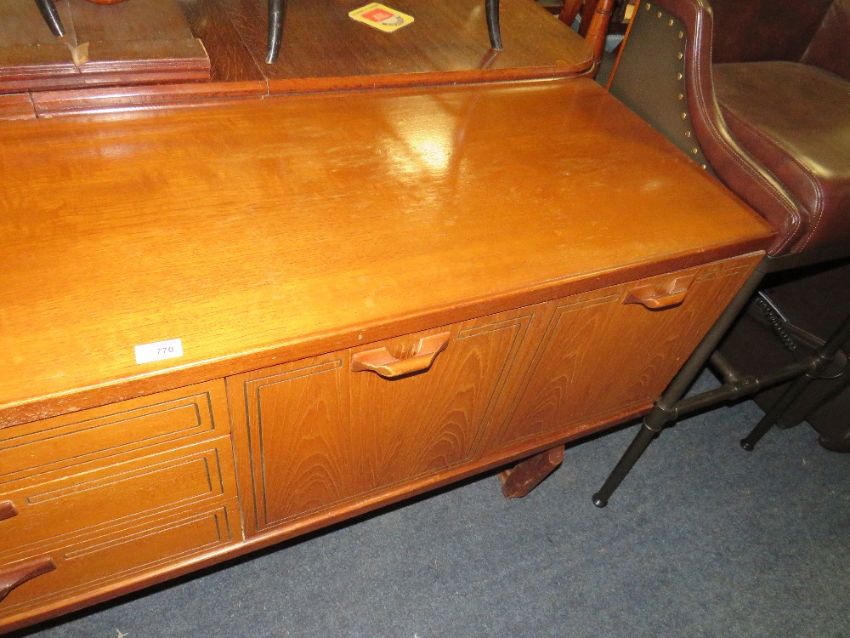 A RETRO 'BEAUTILITY' TEAK SIDEBOARD H-72.5 W-183 CM