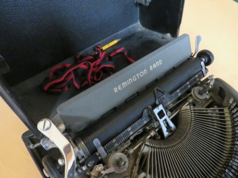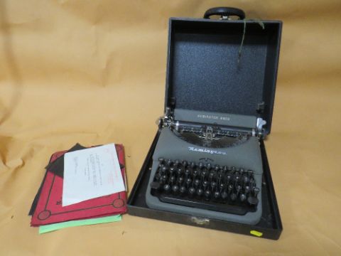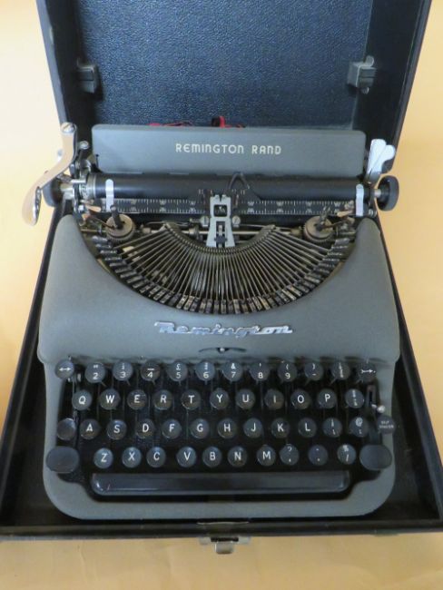 A CASED VINTAGE REMMINGTON RAND TYPE WRITER