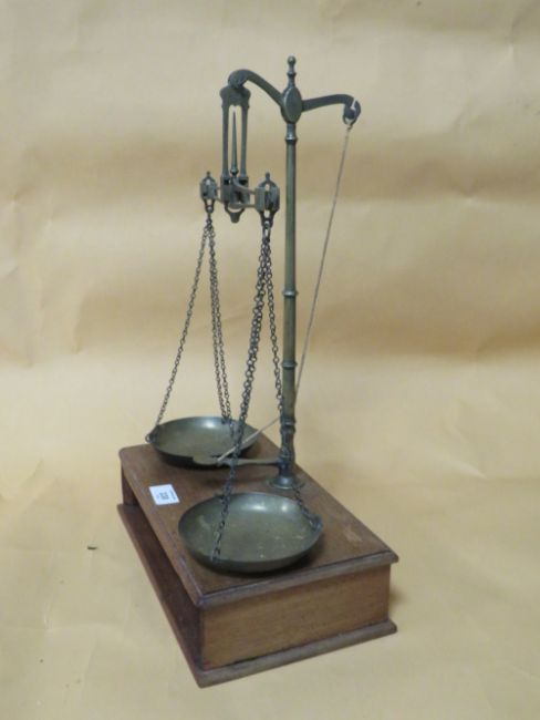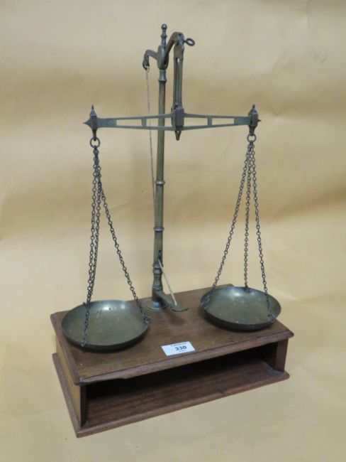 A SET OF VINTAGE BRASS BALANCE SCALES BY 'W & T AVERY BIRMINGHAM', H 47 cm, W 34 cm