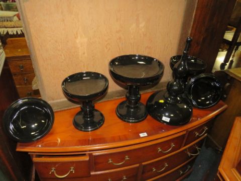 A GARNITURE OF MODERN EBONISED DISPLAY VESSELS H-75 CM (LARGEST)