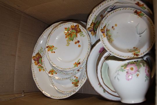 A BOX OF GRINDLEY CHINA CREAM PETAL CERAMICS ETC