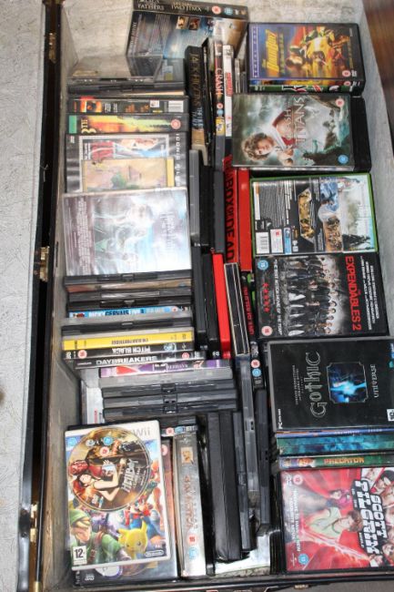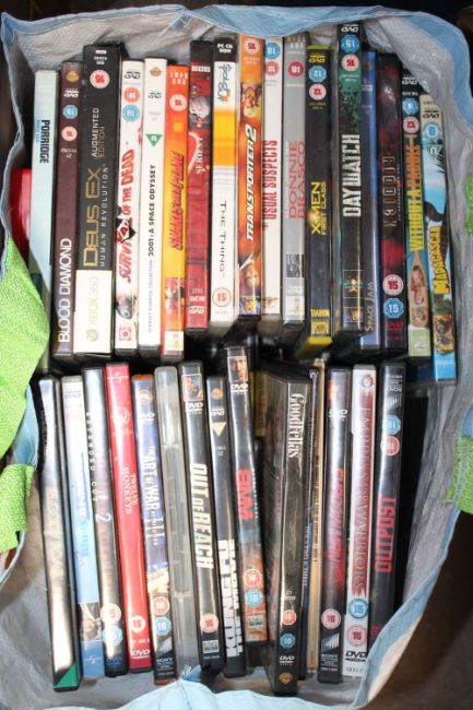 TWO BAGS AND A TRUNK OF SECOND HAND DVDS