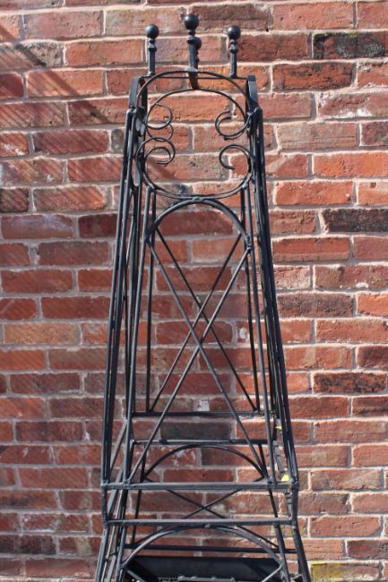 A LARGE WROUGHT 'EIFFEL TOWER' GARDEN OBELISK / PLANTER H-182 CM