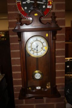 A REPRODUCTION MAHOGANY WALLCLOCK