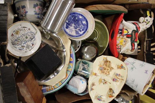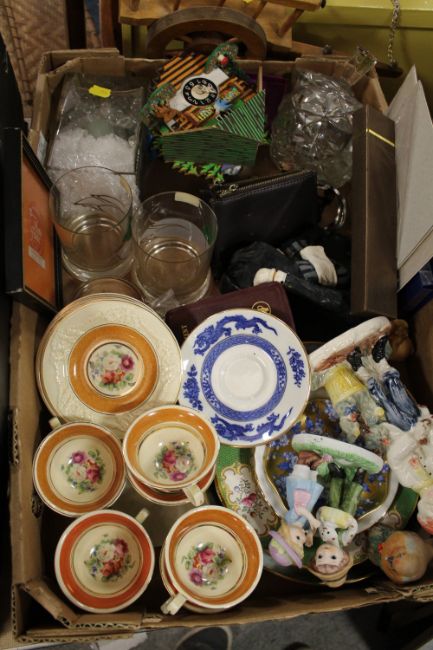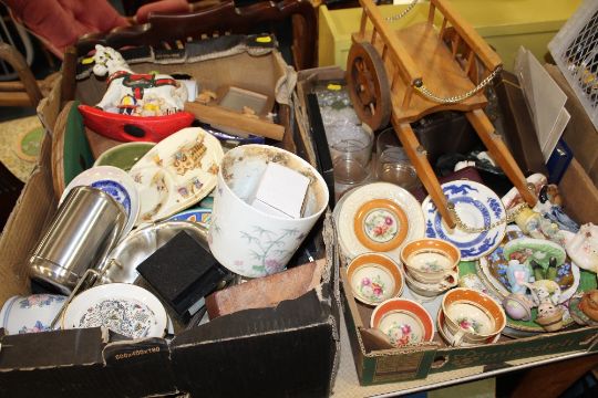 TWO TRAYS OF ASSORTED CERAMICS AND COLLECTABLES TO INCLUDE ADAM'S CUPS AND SAUCERS