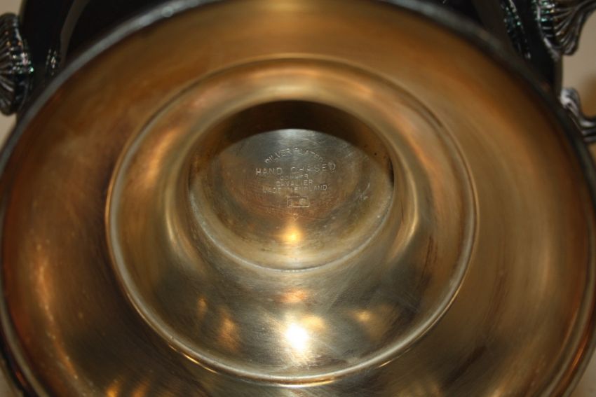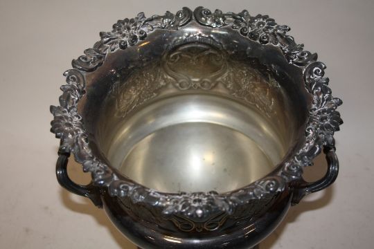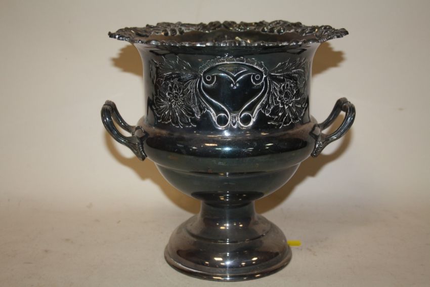 A SILVER PLATED TWIN HANDLED CHAMPAGNE BUCKET - HEIGHT 24CM