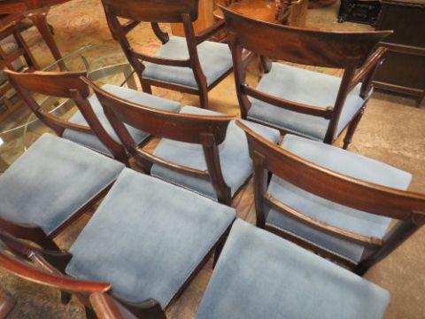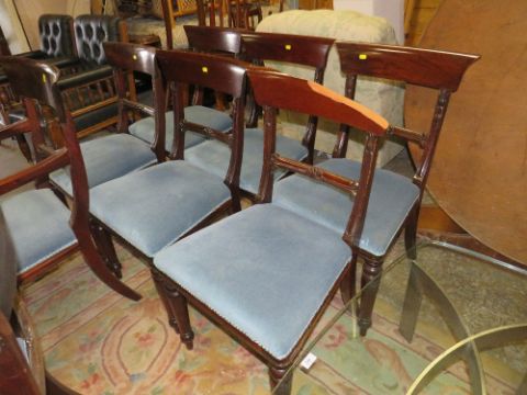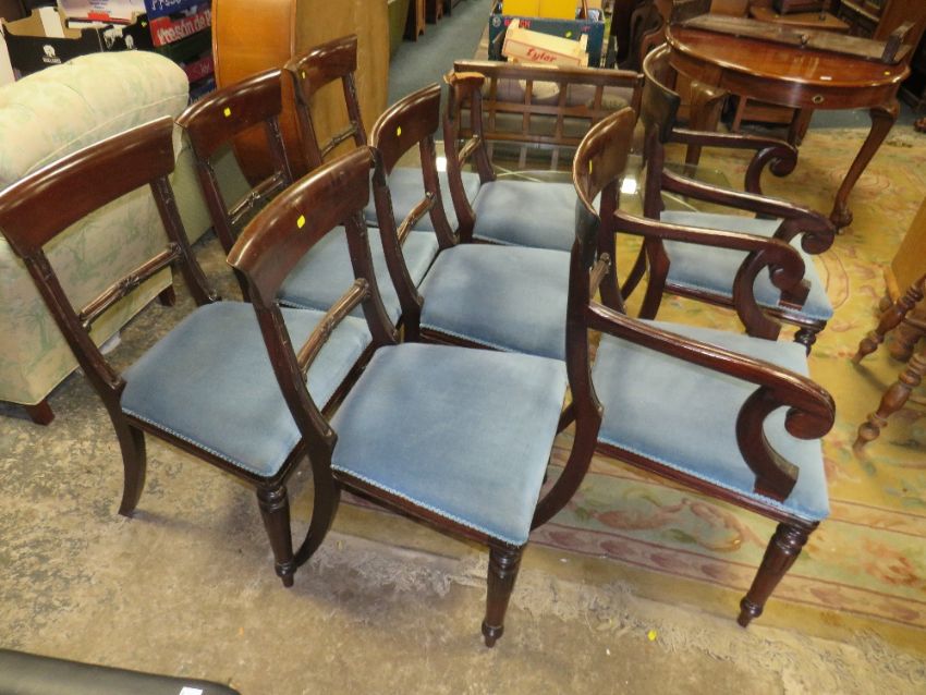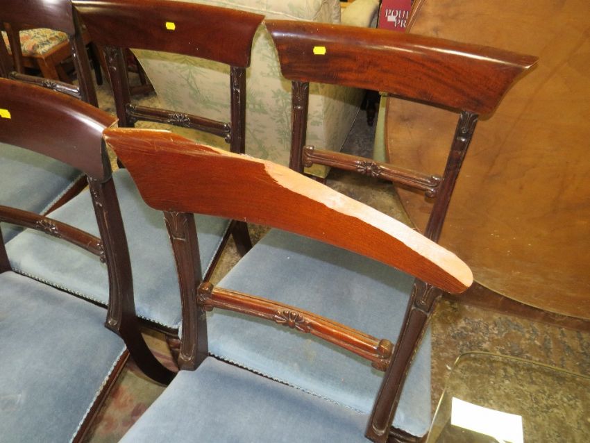 A SET OF SEVEN ANTIQUE STYLE MAHOGANY DINING CHAIRS WITH CARVED DETAIL - ONE A/F