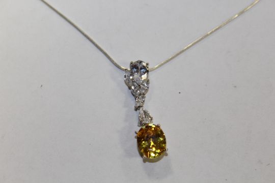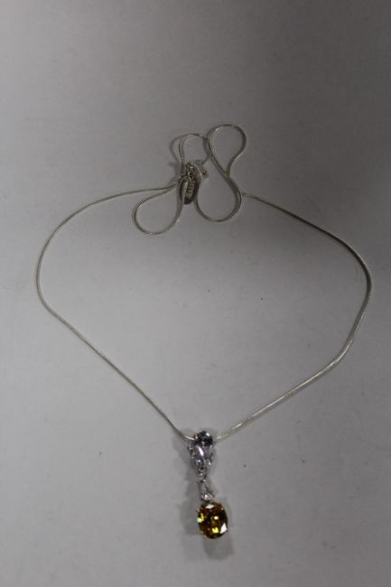 A STERLING SILVER NECKLACE WITH YELLOW STONE PENDANT - APPROX WEIGHT 7.2G