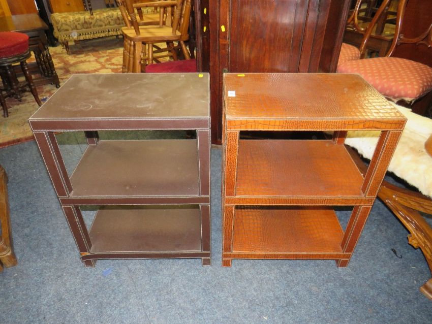 A FAUX CROCODILE SKIN OCCASIONAL STAND TOGETHER WITH A SIMILAR STAND BOX AND BIN (4)