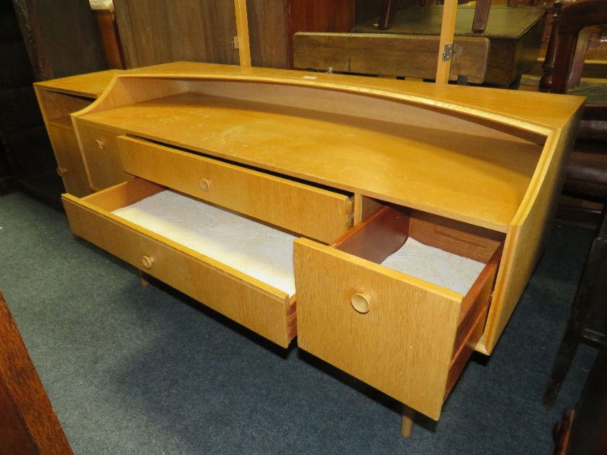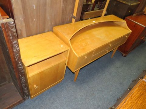 A UTILITY DRESSING TABLE - NO MIRROR - AND A BEDSIDE CABINET (2)