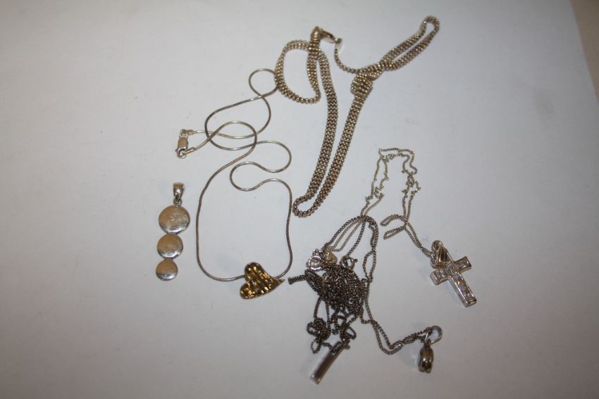 A BAG OF SILVER LADIES PENDANTS AND CHAINS ETC