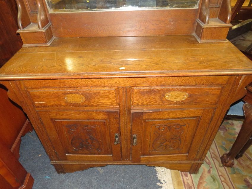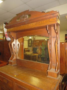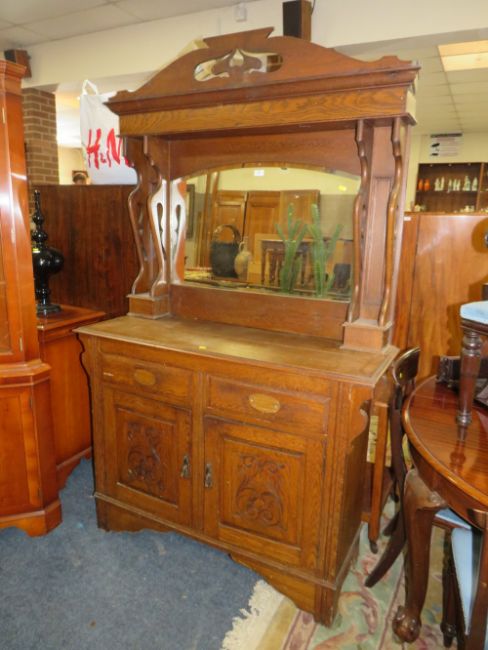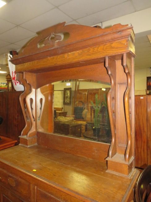 AN OAK EARLY 20TH CENTURY MIRRORBACKED SIDEBOARD H-205 W-126 CM