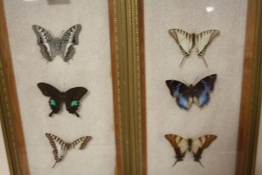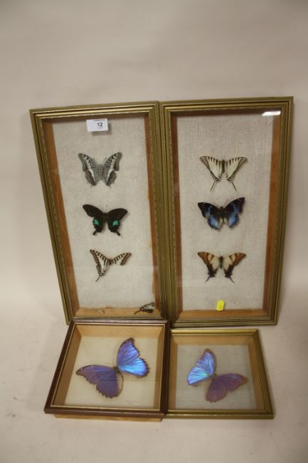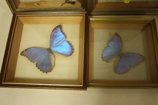 FOUR FRAMED AND GLAZED TAXIDERMY PINNED BUTTERFLY STUDIES
