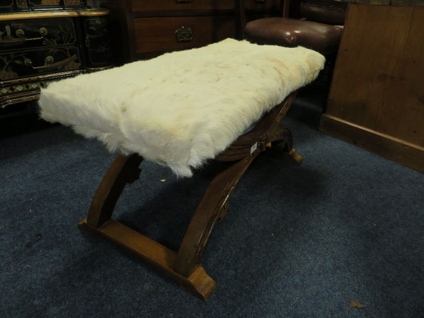 A DECORATIVE 'X' FRAME STOOL W-82 CM