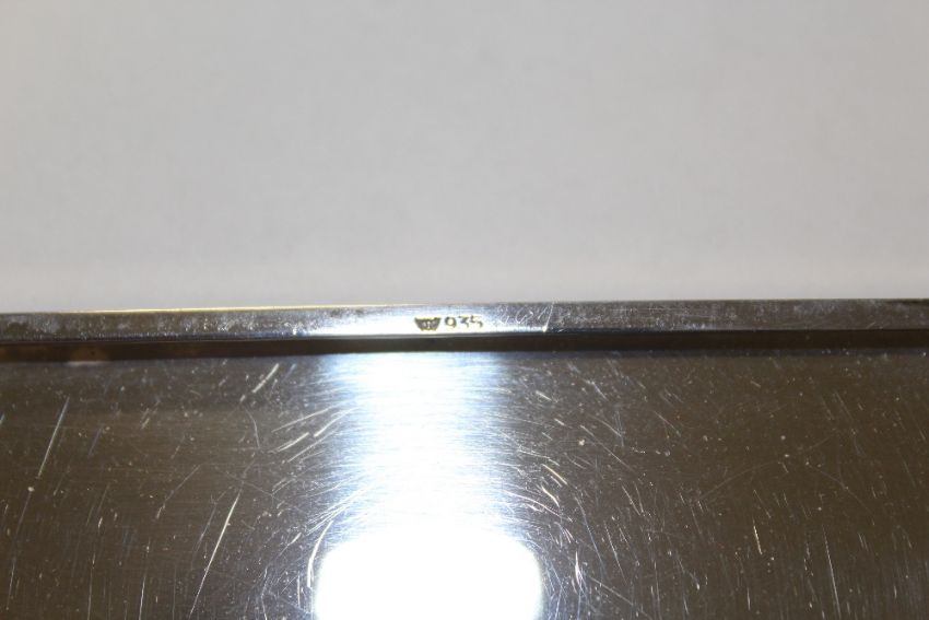 A VINTAGE SILVER CIGARETTE CASE STAMPED 935 - WIDTH 12CM