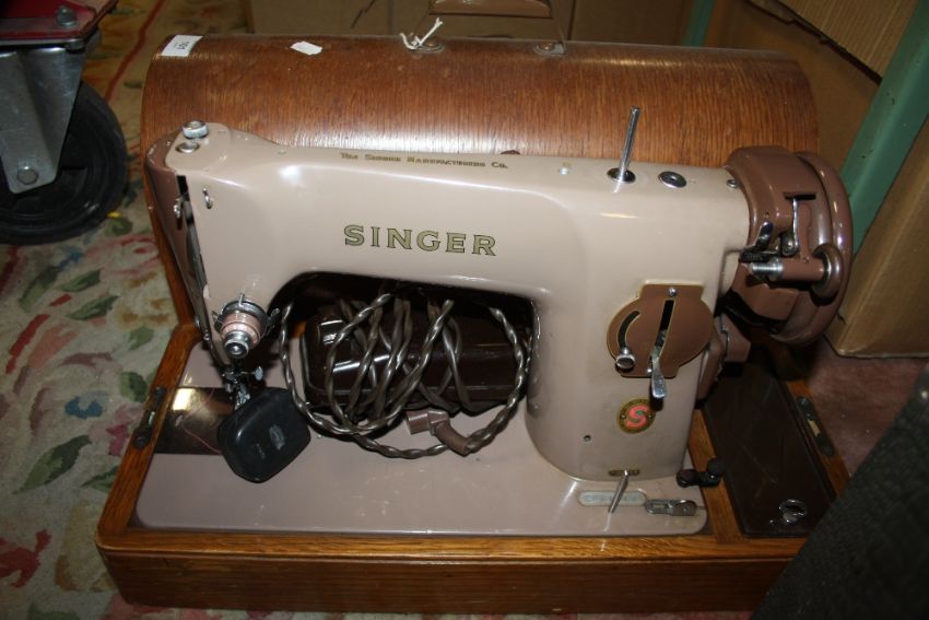 A VINTAGE CASED SINGER SEWING MACHINE