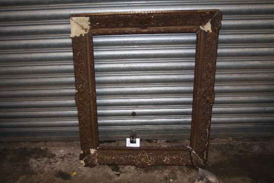 AN ANTIQUE GILT PITCH FRAME A/F - REBATE 51 CM BY 64.5 CM