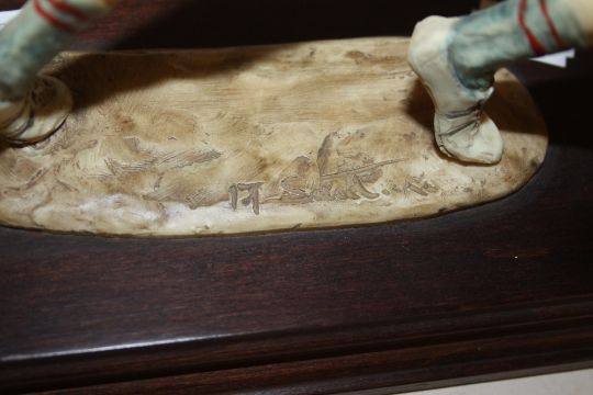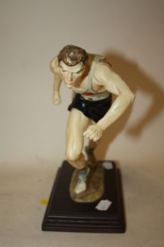 A CAPO DIMONTE LA MEDEA CERAMIC FIGURE TOGETHER WITH A RESIN RUNNING MAN FIGURE WITH SIGNATURE TO BASE