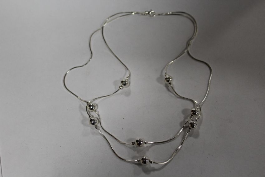 A STERLING SILVER BALL NECKLACE - APPROX WEIGHT 17.2G