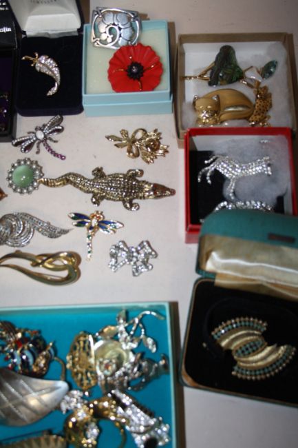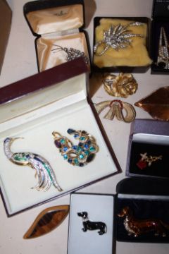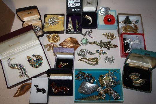 A QUANTITY OF MOSTLY MODERN BROOCHES TO INCLUDE ANIMAL SHAPED EXAMPLES