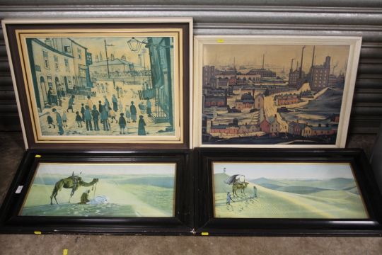 TWO FRAMED L. S LOWRY PRINTS, TOGETHER WITH A PAIR OF EGYPTIAN SCENE PRINTS (4)