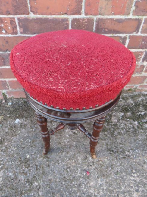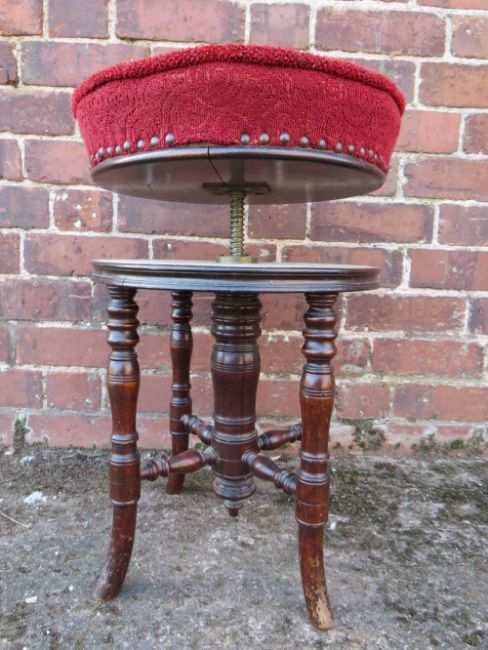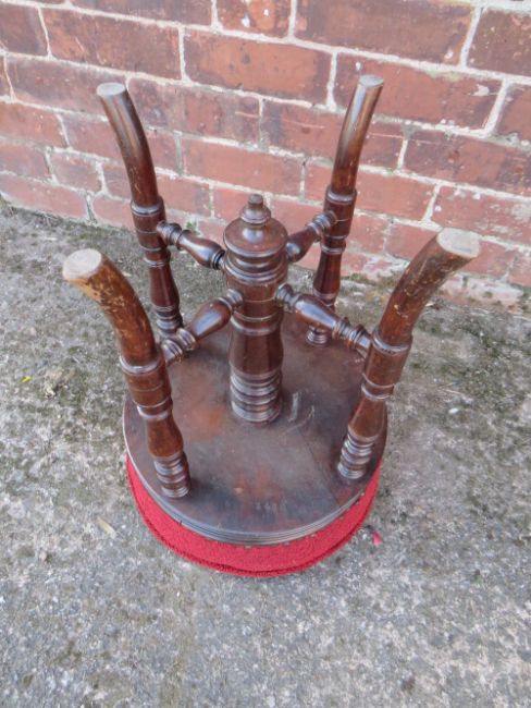 A VICTORIAN MAHOGANY CIRCULAR REVOLVING PIANO STOOL