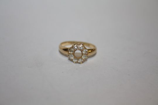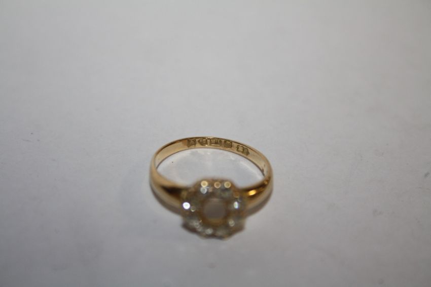 A HALLMARKED 18 CARAT GOLD AND DIAMOND RING A/F - MISSING CENTRAL STONE APPROX WEIGHT - 2.9G