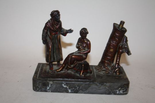 A COLD PAINTED BRONZE FIGURATIVE TABLE LIGHTER ON MARBLE BASE