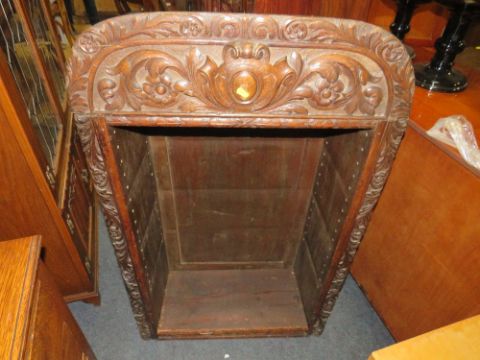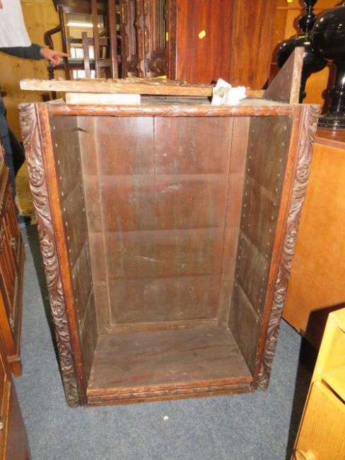 AN OPEN BOOKCASE WITH CARVED DETAIL W-72.5 CM A/F