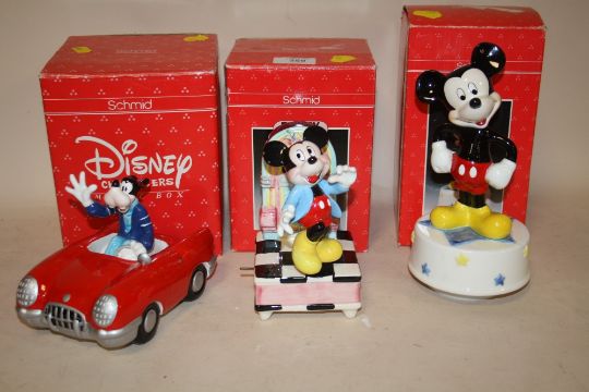 THREE BOXED SCHMID DISNEY CHARACTERS MUSIC BOXES