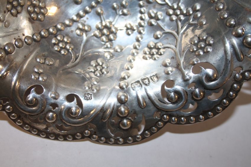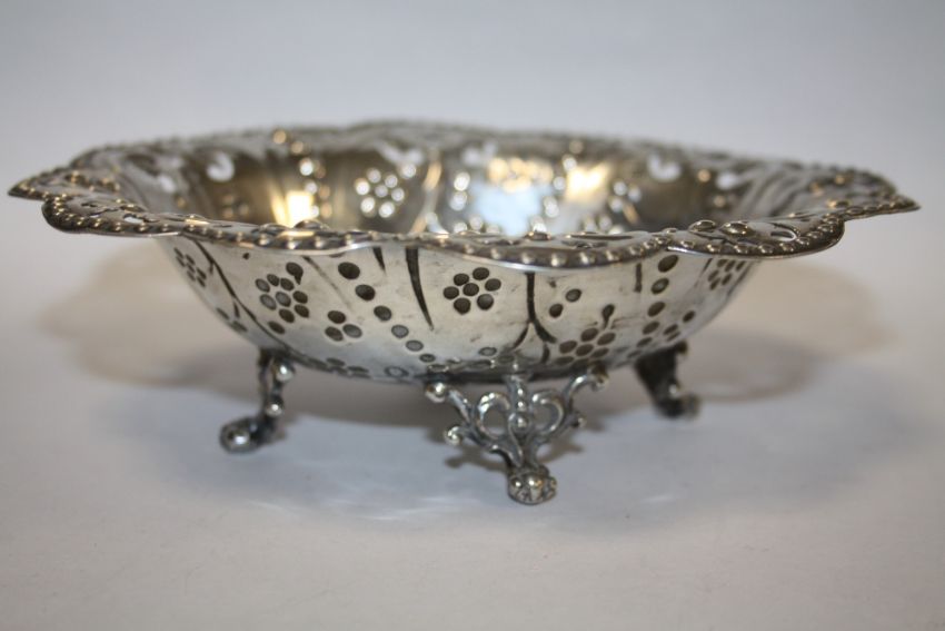 A HALLMARKED SILVER EMBOSSED BOWL ON LEGS - APPROX WEIGHT 140.1G