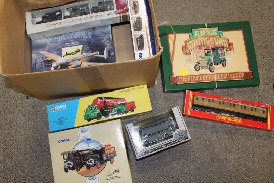 THREE BOXES OF MOSTLY BOXED DIE CAST TOY CARS AND VEHICLES TO INCLUDE CORGI EXAMPLES