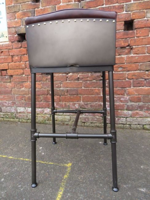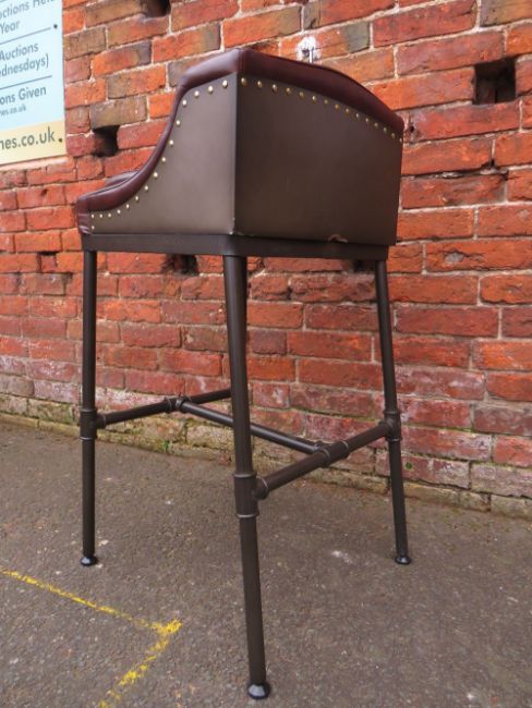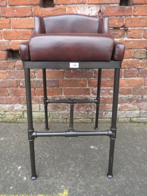 A MODERN DARK BROWN LEATHER BAR STOOL