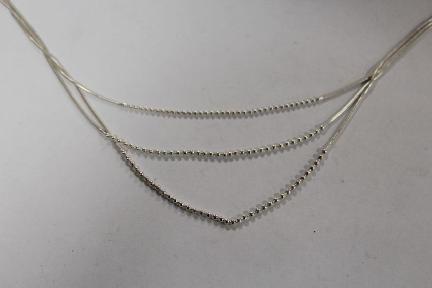 A STERLING SILVER THREE STRAND NECKLACE - APPROX WEIGHT 12.8G