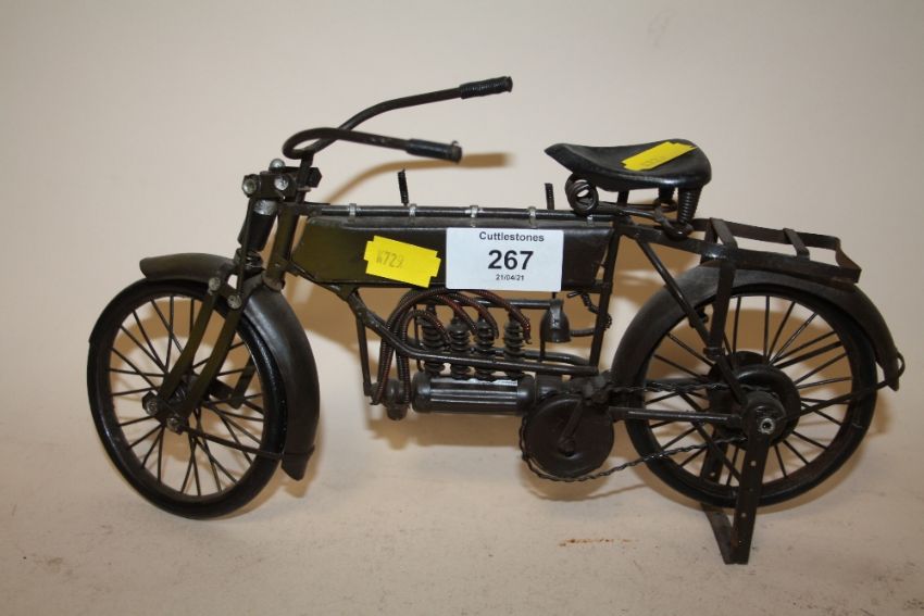 A MODERN METAL MODEL OF A VINTAGE MOTORBIKE