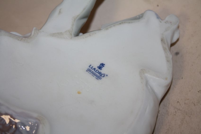 A LLADRO FIGURE OF A SEATED BOY WITH A DOG AND PUPPIES