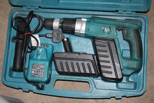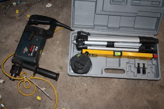 A CASED PERFORMANCE CORDLESS DRILL AND CIRCULAR SAW WITH BATTERIES TOGETHER WITH ANOTHER CASED CORDLESS 24V HAMMER DRILL WITH BATTERIES & CHARGER, A CASED LASER TOOL KIT PLUS A BOSCH 110V HAMMER DRILL (4)