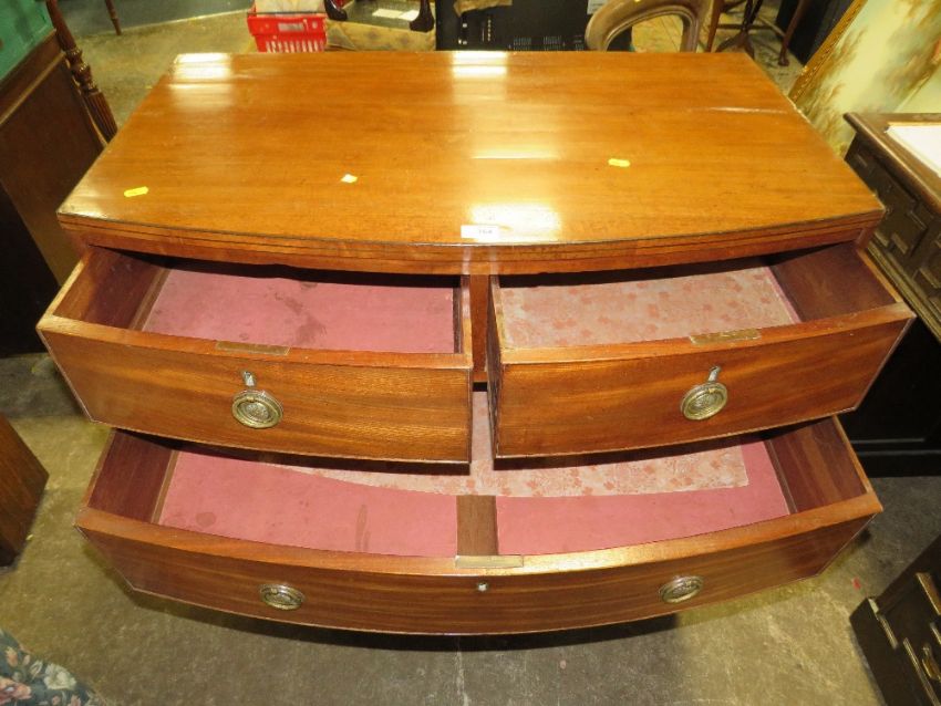 A 19TH CENTURY BOW FRONTED CHEST OF TWO SHORT ABOVE THREE LONGER GRADUATED DRAWERS H-98 W-92 CM