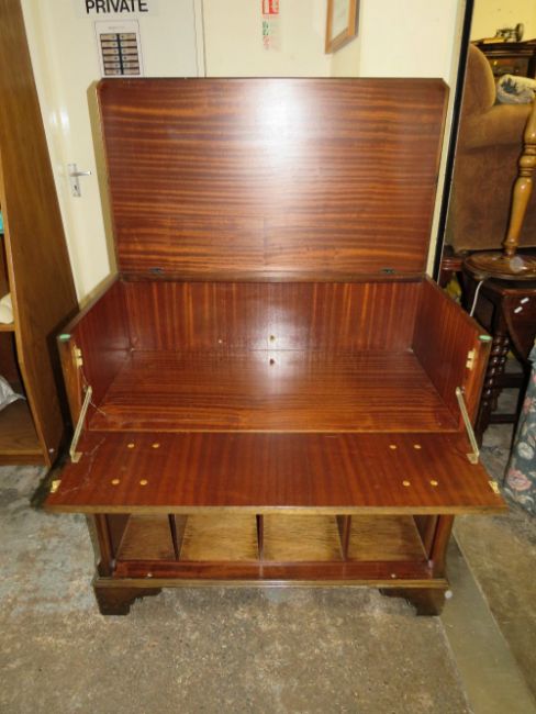 A CONTEMPORY MAHOGANY INLAID HI-FI CABINET IN THE GEORGIAN STYLE H-85 W-92 CM