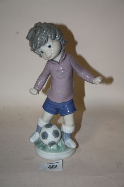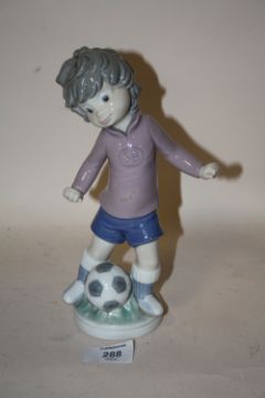 A LLADRO FIGURE OF A BOY WITH A FOOTBALL SPORT - BILLY PRODUCTIONS 1,978 HEIGHT - 23CM