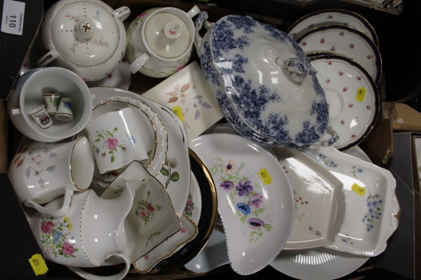 TWO TRAYS OF ASSORTED CHINA TO INCLUDE HAND PAINTED EXAMPLES