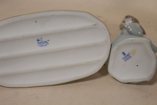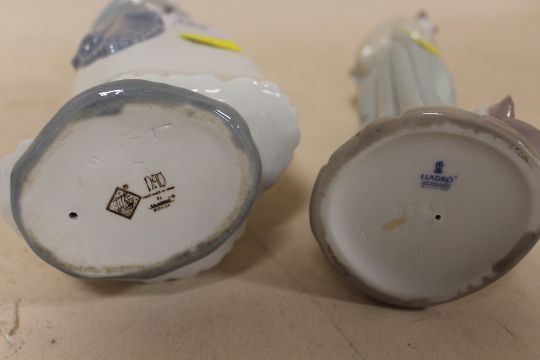TWO LLADRO FIGURES OF GIRLS WITH CATS, TOGETHER WITH A NAO FIGURE OF A WOMAN WITH A PUPPY AND A NADAL FIGURE OF A BOY WITH A DOG (4)