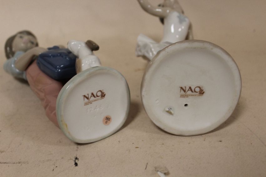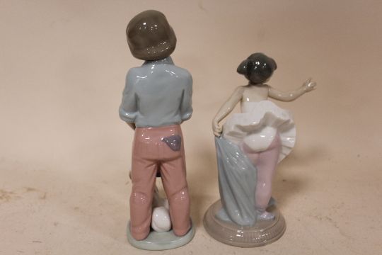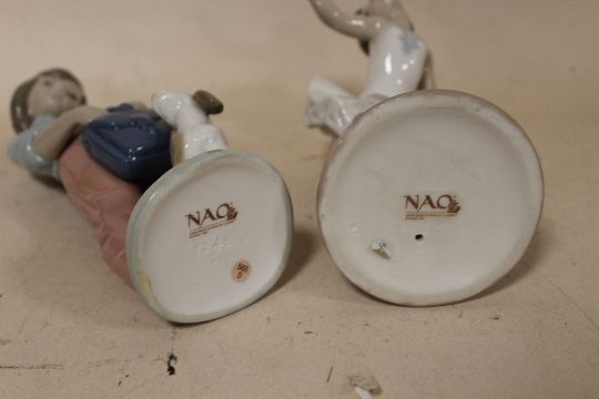 A NAO FIGURE OF A YOUNG BALLERINA, TOGETHER WITH A NAO FIGURE OF A BOY HOLDING A BAG WITH A DOG (2)