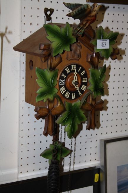 A CARVED WOODEN CUCKOO CLOCK