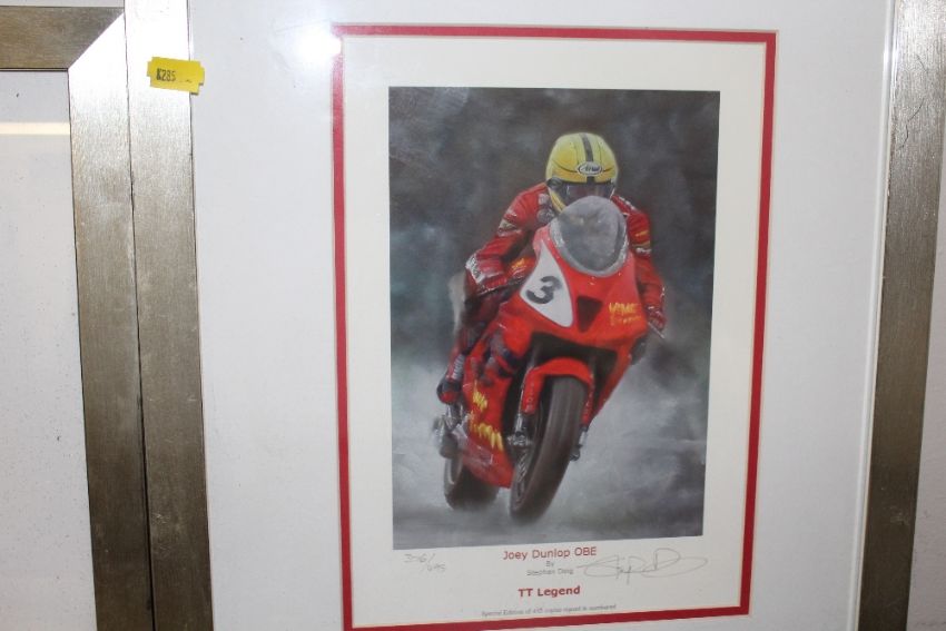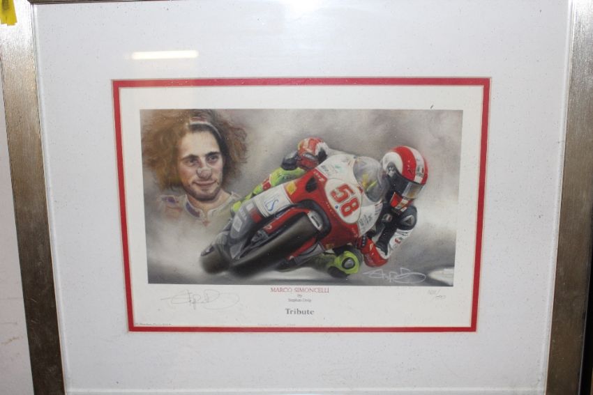 THREE SIGNED LIMITED EDITION MOTORCYCLE PICTURES BY SEFAN DOIG