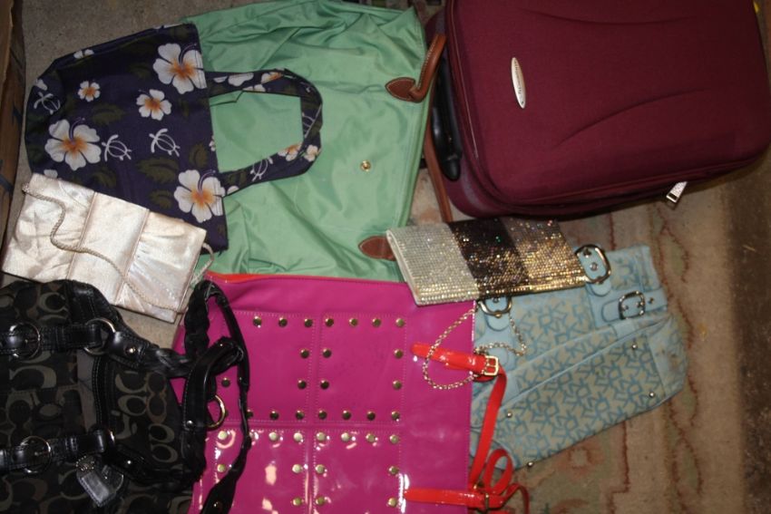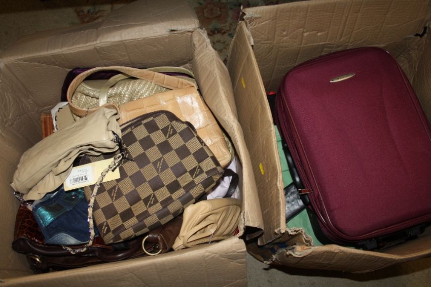 TWO LARGE BOXES OF LADIES HANDBAGS